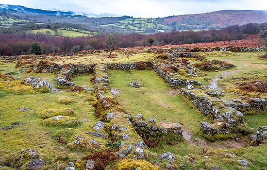 The evocative remains of this isolated Dartmoor hamlet, which was probably abandoned in the early 14th century, lie between the granite landmarks of Hound Tor and Greator Rocks.
