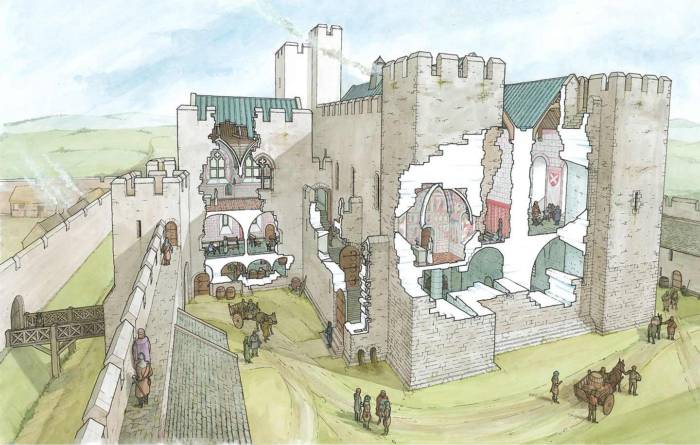 A reconstruction of the keep at Middleham in about 1300