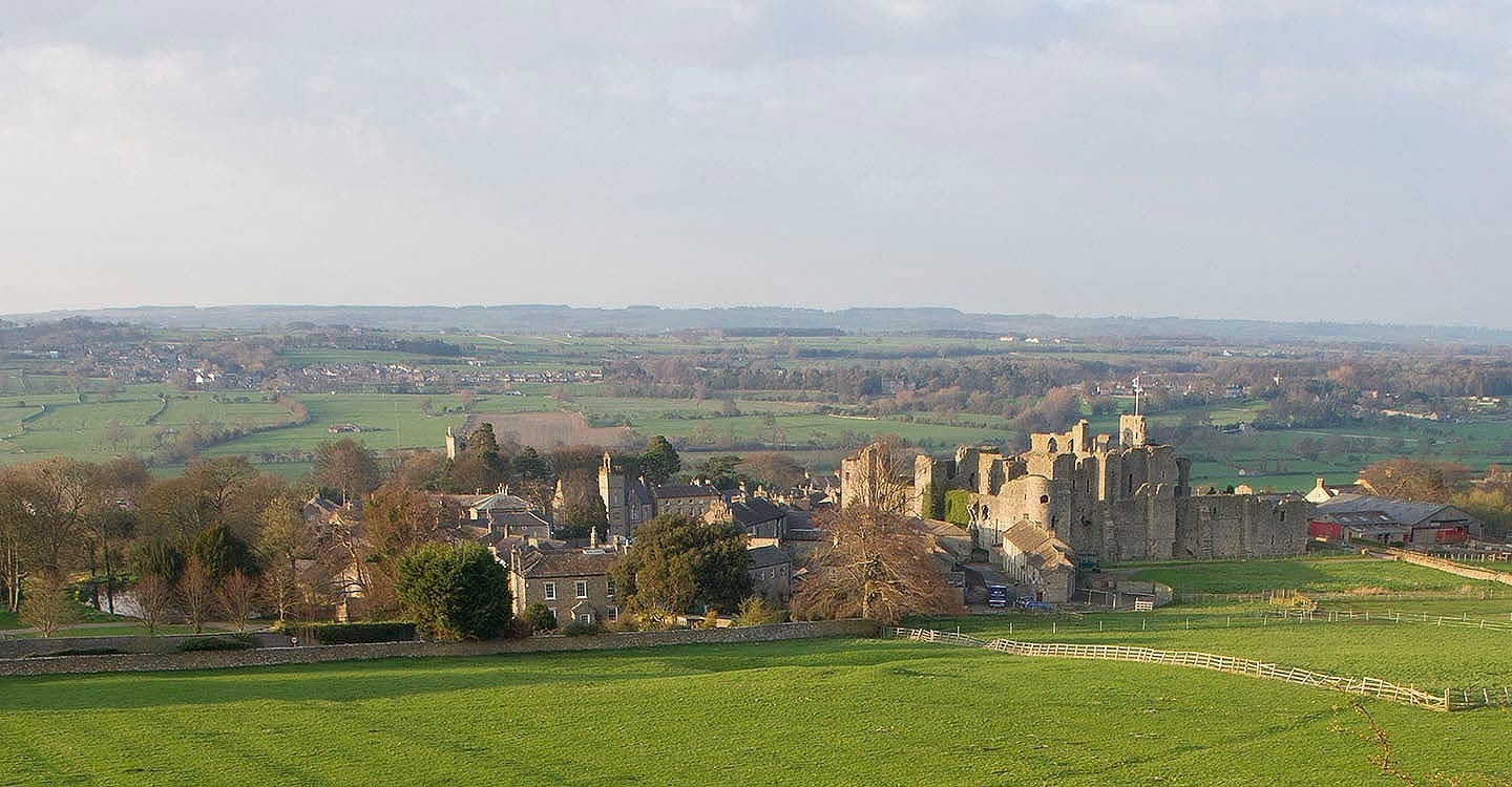 Aerial view of Middleham Castle from the south-east