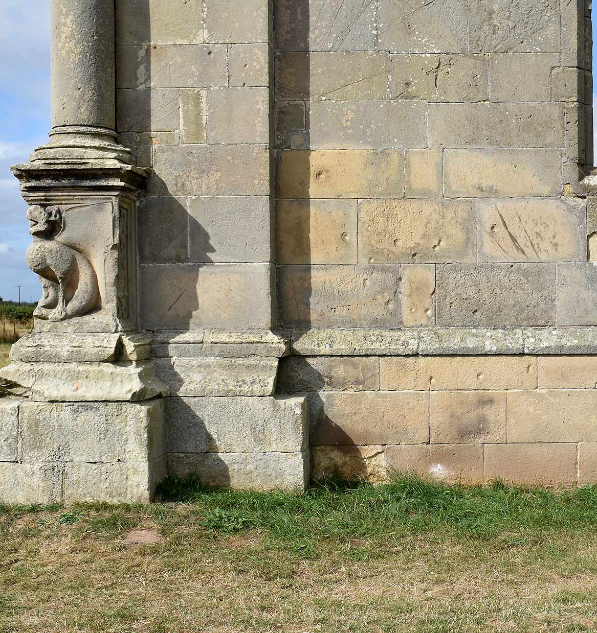 The walls of the castle and the south side of the church have multiple small circular scars created by the impact of lead shot, fired from muskets and pistols during the fighting. At least 120 scars are visible, including several clusters on the mansion’s east and south walls.