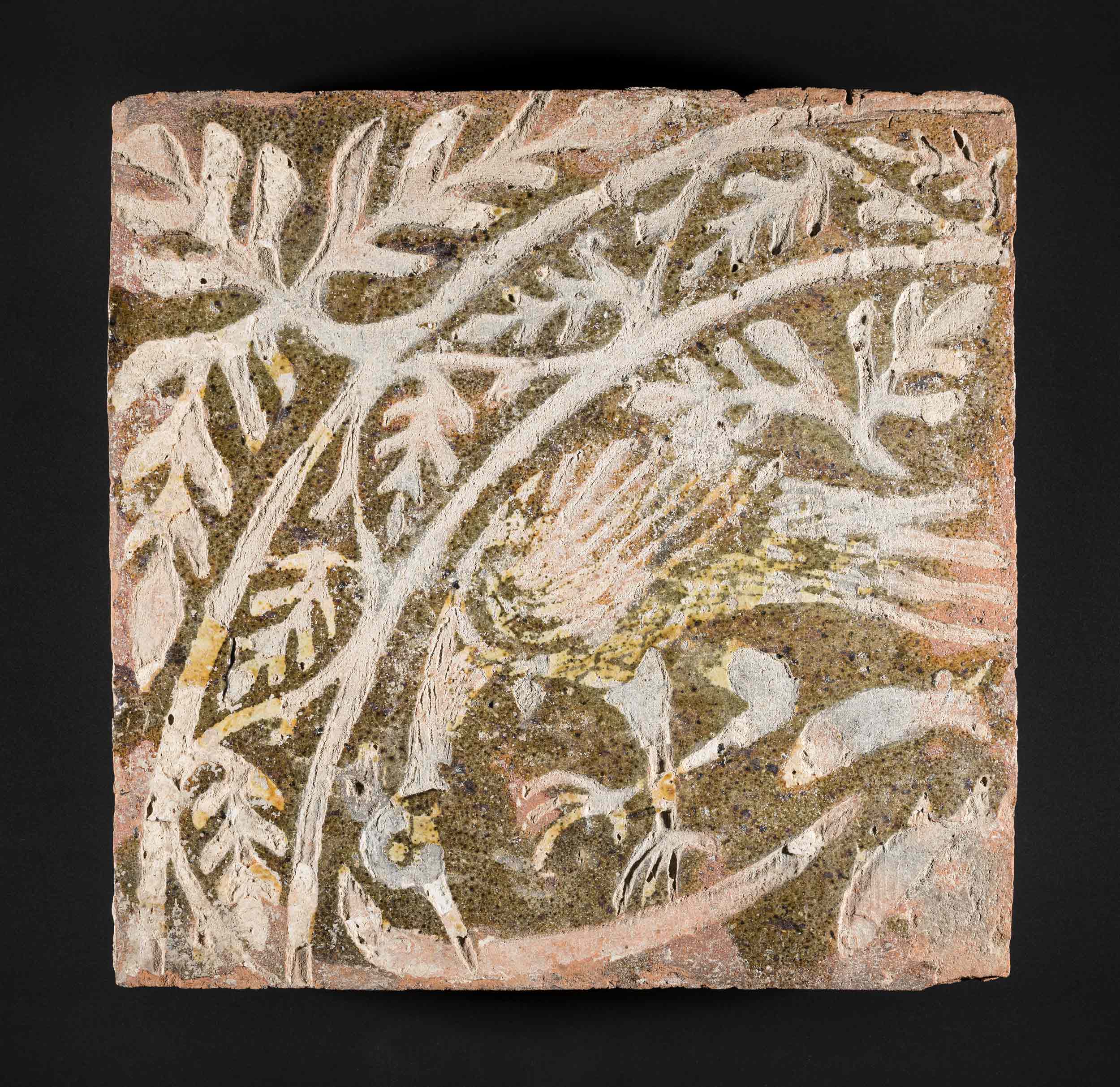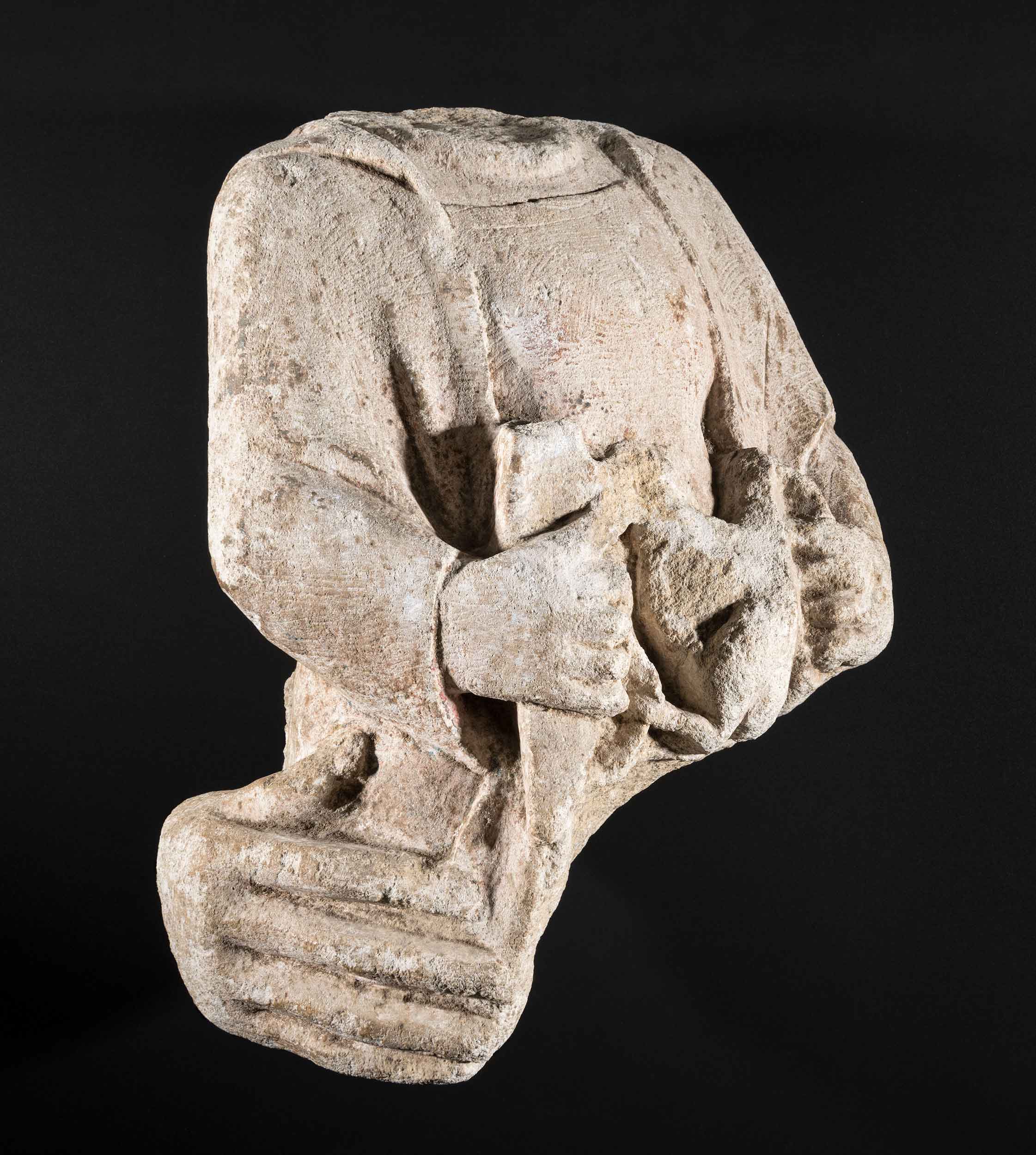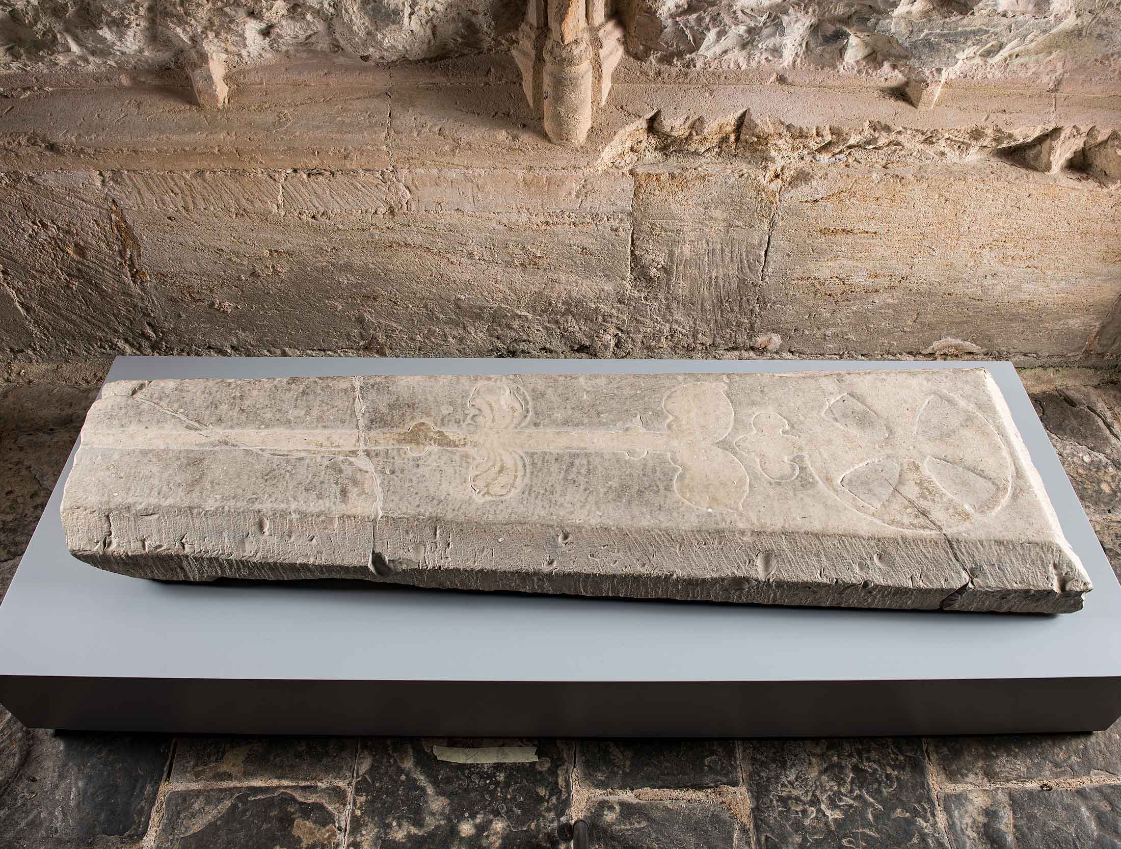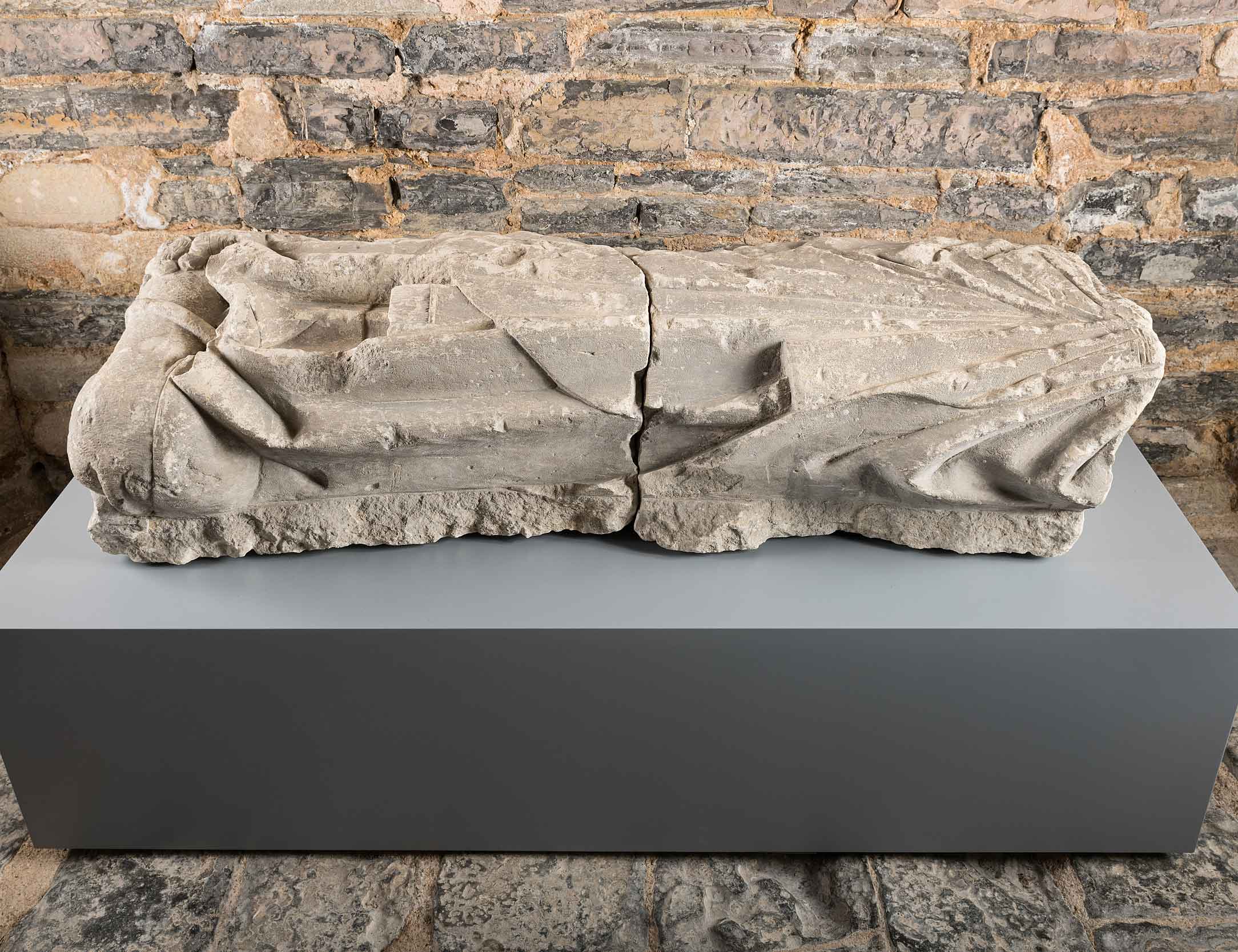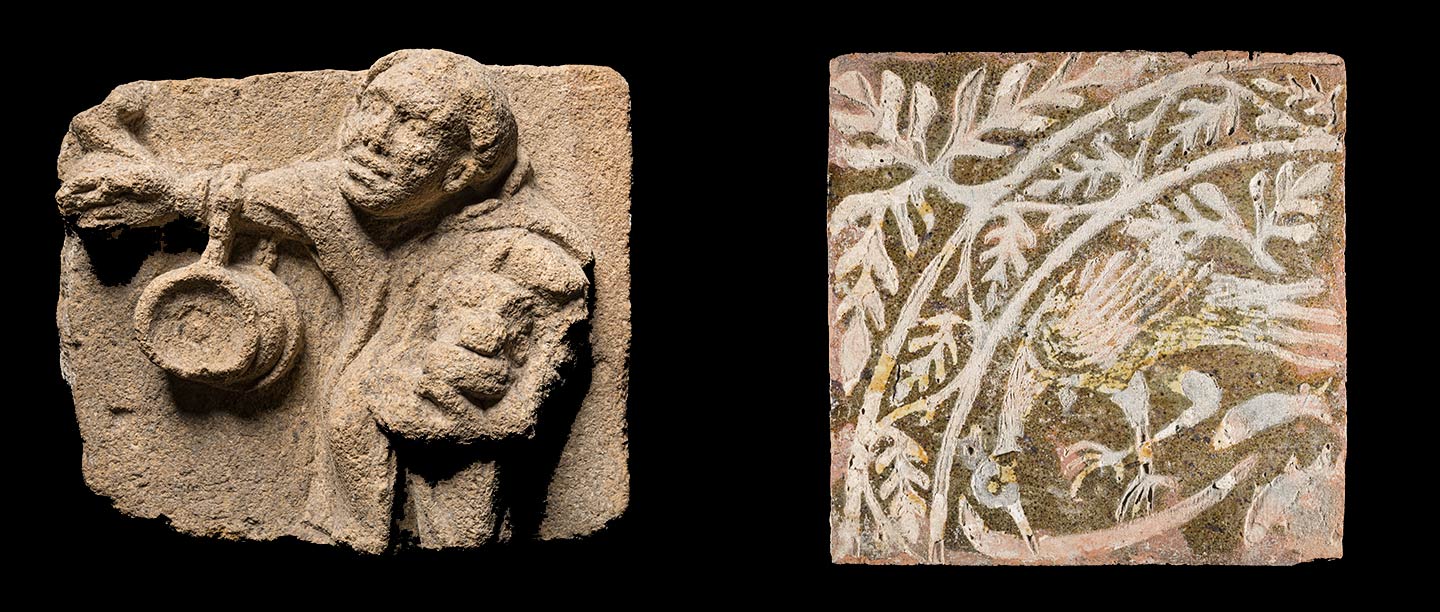 Most of the collection consists of stonework, much of it fragments of extremely high-quality statues, tombs and architectural pieces. Little metalwork has survived from the site but painted window glass, pottery and an exceptional collection of floor tiles survive.