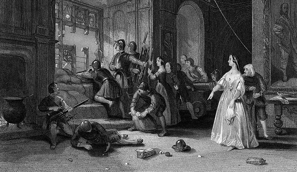 The Parliamentarians offer to spare the lives of Lady Blanche, her daughter-in-law, the children and maids, but not the lives of the fighting men. Blanche and Cicely refuse, choosing ‘bravely … rather to die together than live on so dishonourable terms’.