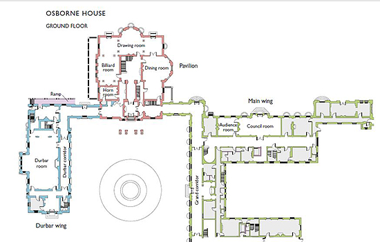There was originally no grand reception room at Osborne. When Queen Victoria needed to entertain large numbers of people this had to be confined mainly to the summer months, when marquees could be erected on the lawns. In order to remedy this deficiency the Durbar Wing was built in 1890–92.