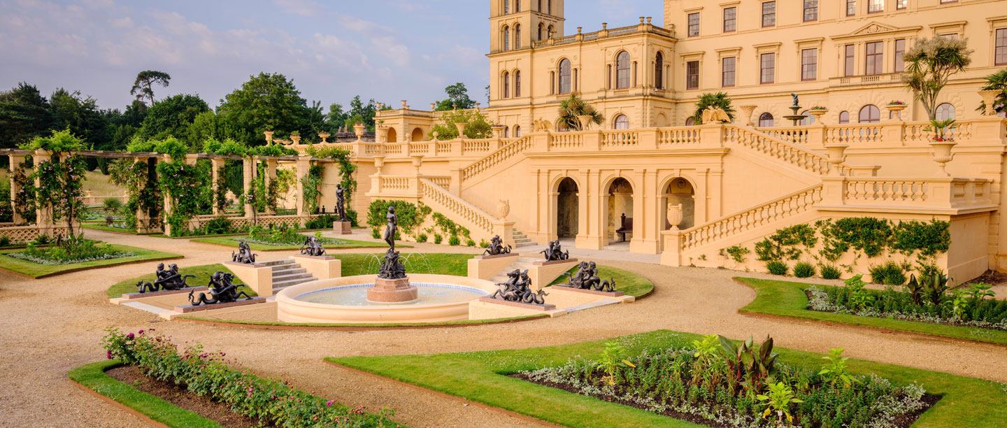 In the centre of the lower terrace is the burbling Andromeda fountain, bought by Queen Victoria during the Great Exhibition in 1851. Sitting amid a crystal clear central pool, nearby is the ornate shell alcove, decorated with shells from Osborne’s beach. Both the fountain and shell alcove were painstakingly restored as part of a project to rejuvenate the terraces, completed in 2017.