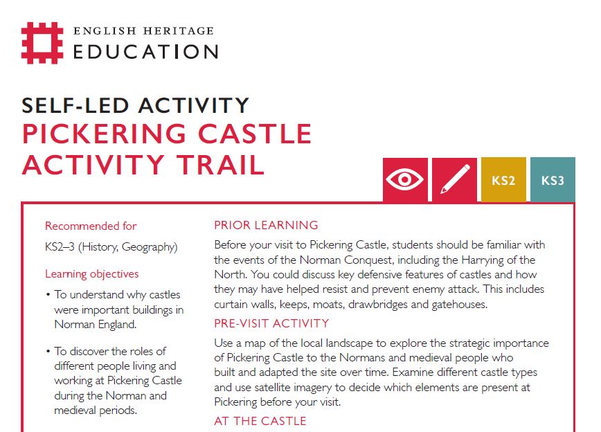 Book a free self-led visit to Pickering Castle and organise your day to suit your curriculum objectives.