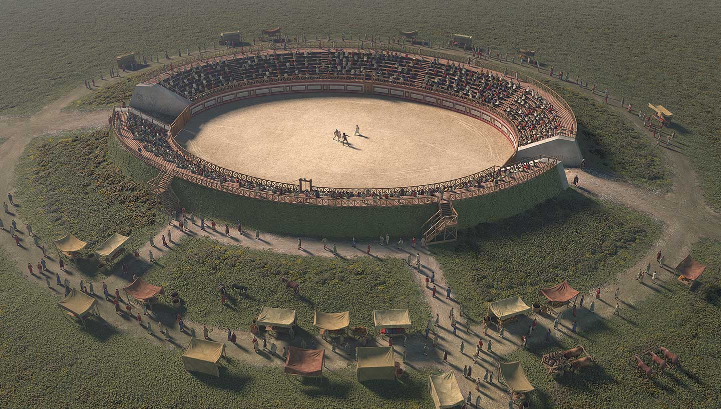 An artist’s impression of the amphitheatre at Richborough as it would have looked in Roman times