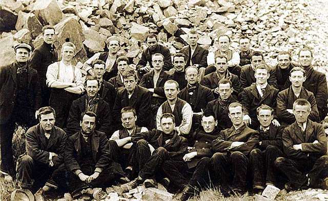 Top image: conscientious objectors, including some of the Richmond Sixteen, at Dyce Camp, near Aberdeen, in 1916