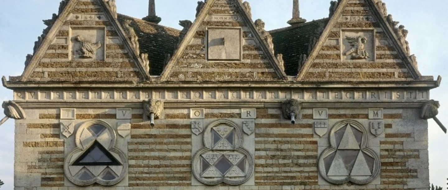 The Lodge was built by Sir Thomas Tresham, a Roman Catholic who was imprisoned for fifteen years in the late 16th century for refusing to become a Protestant.When he was released in 1593, he designed the Lodge to publicly show his faith.