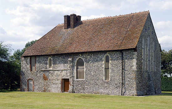 Many of the commandery’s buildings were gradually lost following the Dissolution, but the chapel survived and was converted to residential use as a farmhouse. Floors were inserted across the former chapel and a large chimneystack was built towards its western end. Casement windows replaced the medieval windows in the north wall, and at some point, the exterior of this wall was rendered so that it resembled a fashionable brick façade, traces of which remain visible.