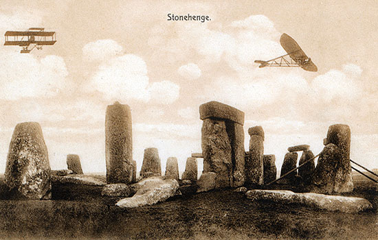 This photograph from 1914 shows one of the lintels being replaced during restoration work on the Stonehenge sarsen circle