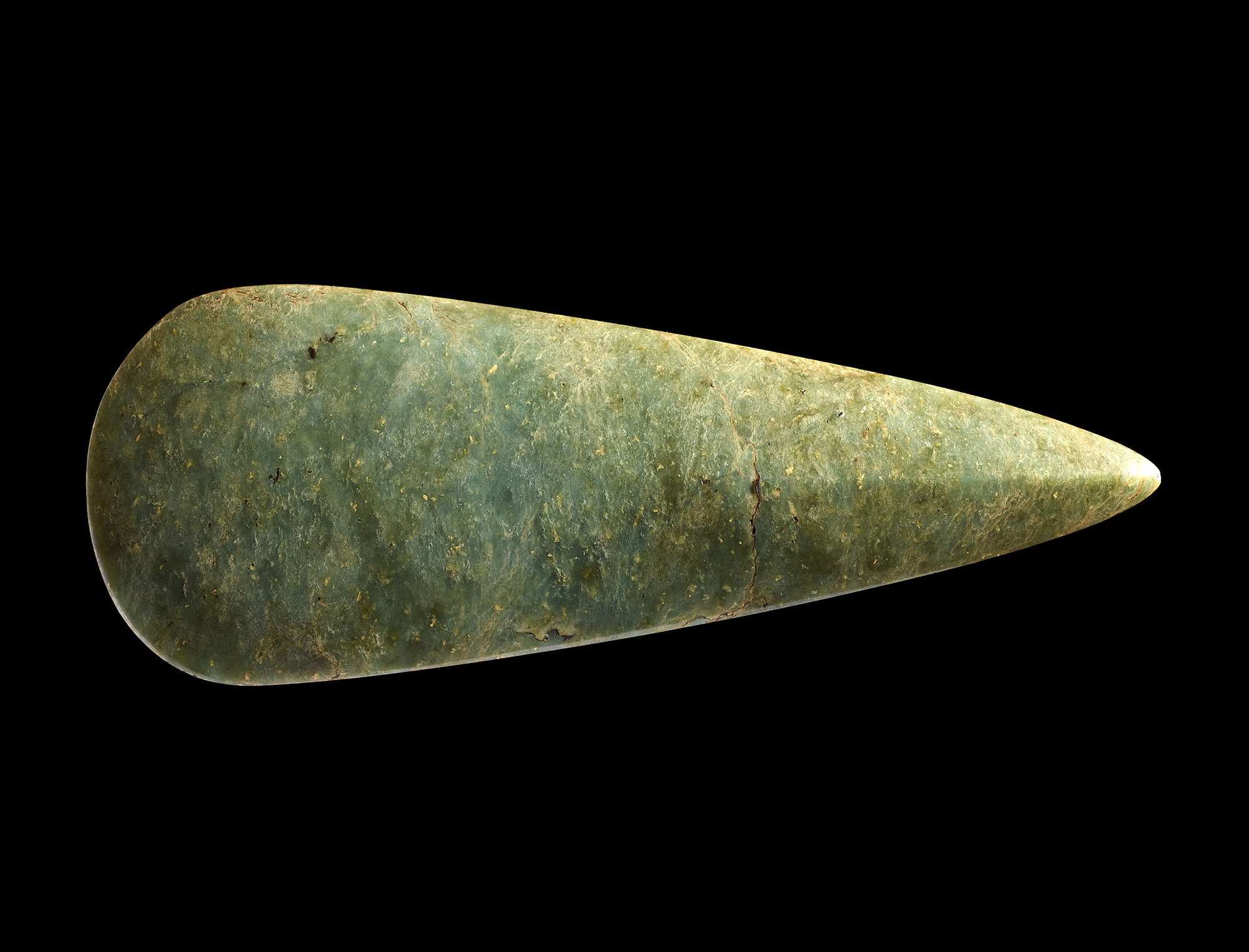 This remarkable polished green axe was found near Canterbury in Kent, England. It is made of a stone called jadeitite, quarried from Monte Viso high in the Italian Alps. This axe was no ordinary tool – it was a treasured object that connected the farmers back to their homelands.