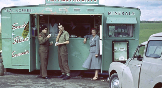 The first café at Stonehenge was established in 1927, but was demolished in 1938. After a long period without refreshments, a mobile tea-bar run by Elsie Cook was permitted in the car park in 1950. Douglas Cook remembers his mother, “She worked at her caravan selling drinks, sweets and food. There were enough visitors to Stonehenge at that time that she could make a decent living but it was hard work and she was there in all weathers.”
