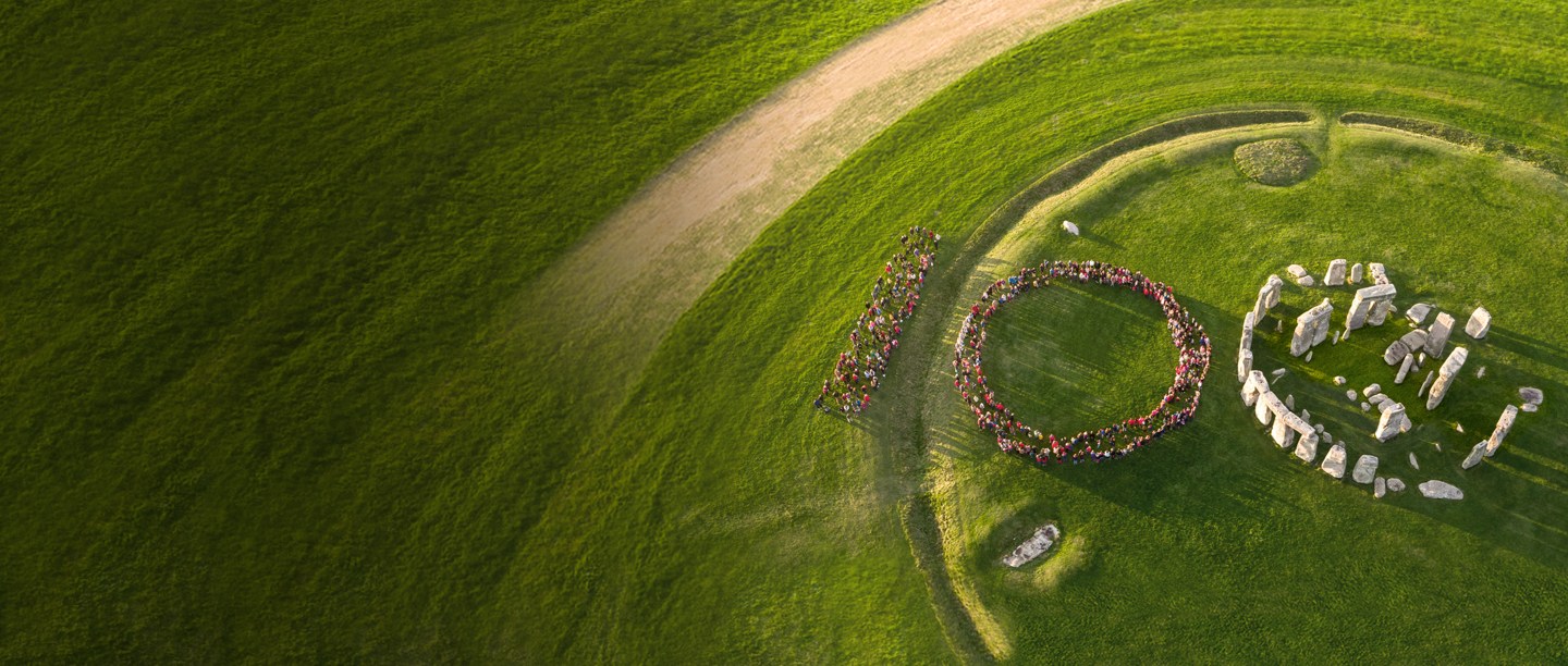 To celebrate this centenary, we gathered 100s of local people together for a special photo. Families, Rainbows, Brownies, Guides, Cubs, Scouts, schools and the military came together at Stonehenge, accompanied by a brass band and morris dancers, for a fun, celebratory occasion. The community gathered at sunrise to be a part of this special film and the on-going story of Stonehenge. We'd like to thank everyone who got up at dawn to be involved.
