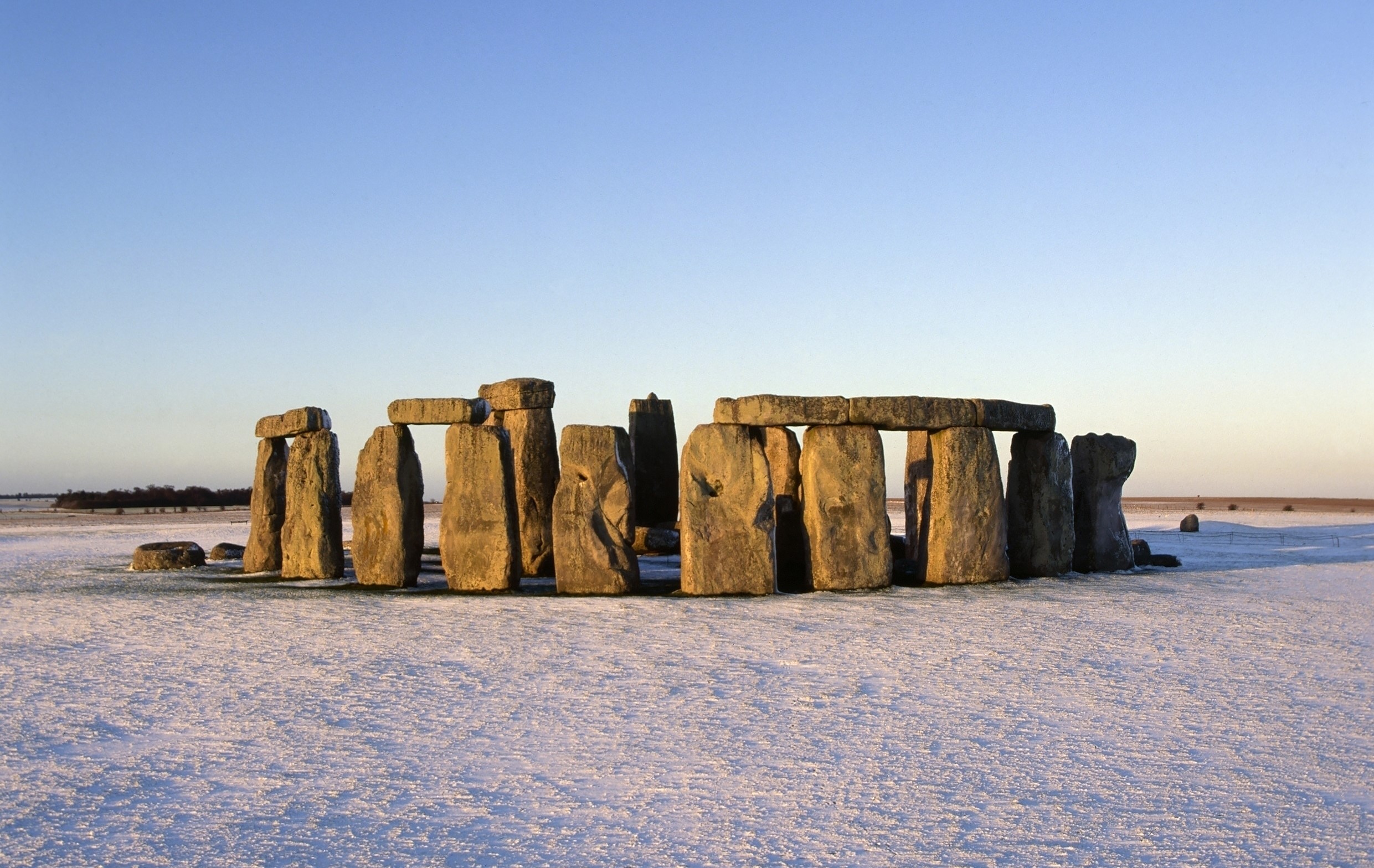 At the summer solstice, around 21 June, the sun rises behind the Heel Stone and its first rays shine into the heart of Stonehenge. Although the tallest trilithon at the monument is no longer standing, the sun would have set between the narrow gap of these uprights during the winter solstice.