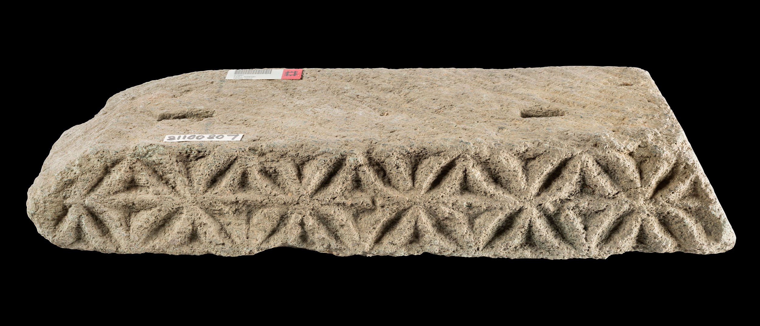 This stone was found in the chapel and is probably part of a window surround. The Romanesque style of decoration may suggest an early 12th-century date for the chapel.
