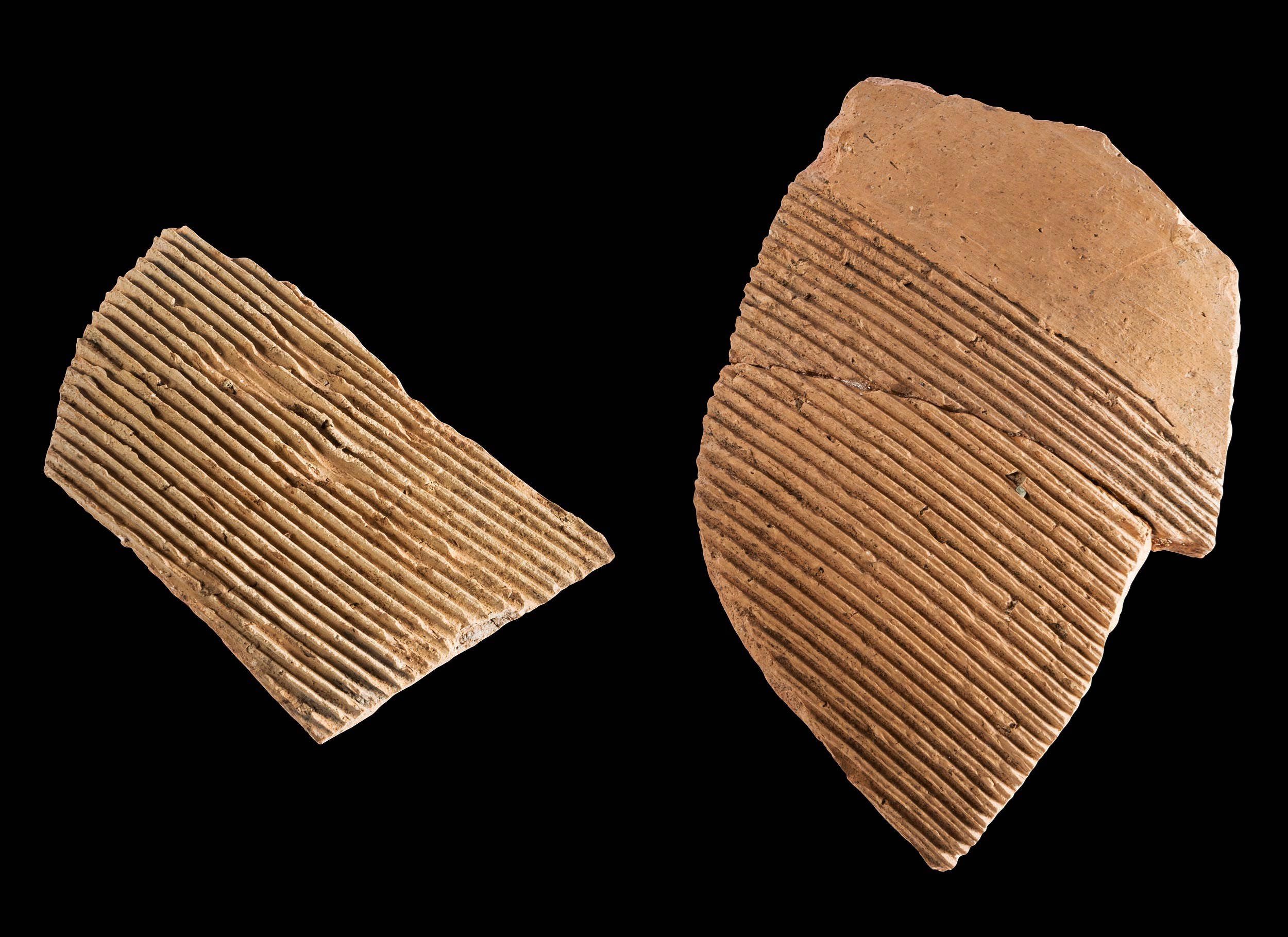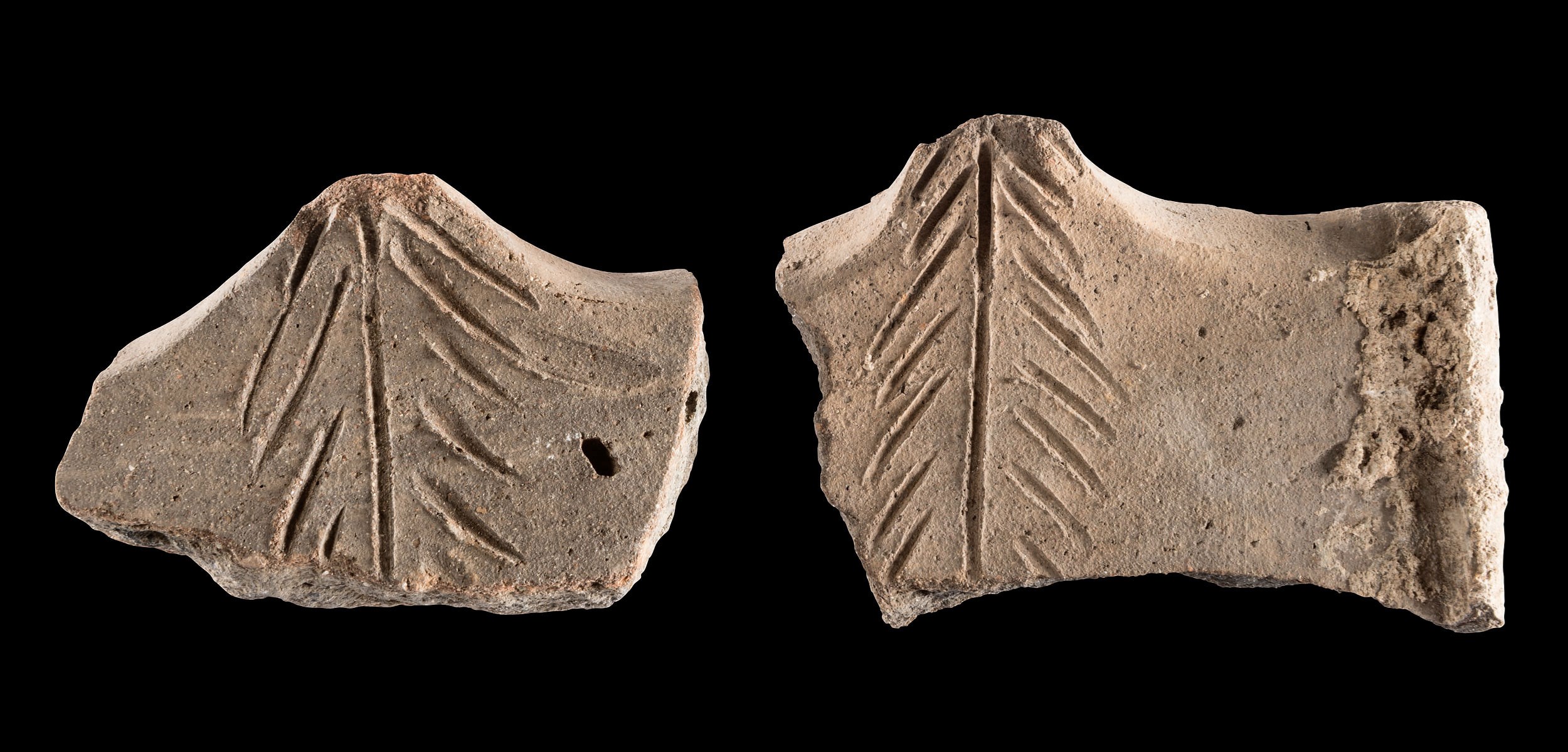 These two pieces of amphora, dating from the 5th or 6th century, were found during excavations near the later Great Hall. Produced in Greece, they were used for transporting wine and olive oil.