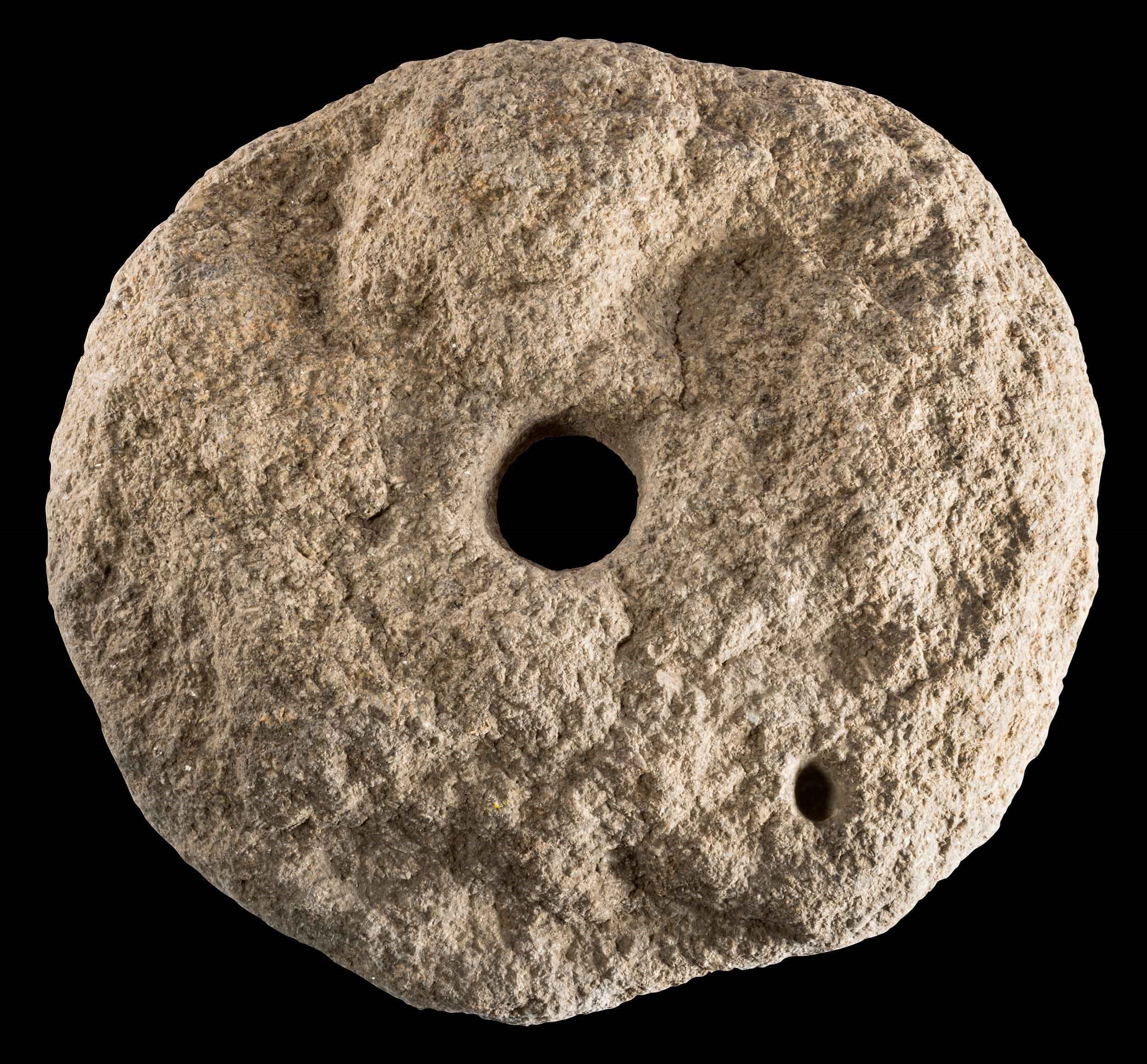 This rotary quern stone, which would have been used to grind grain, was found in the northern ruins of the building remains of the post-Roman settlement. It measures 57 centimetres in diameter and probably dates to the post-Roman period.