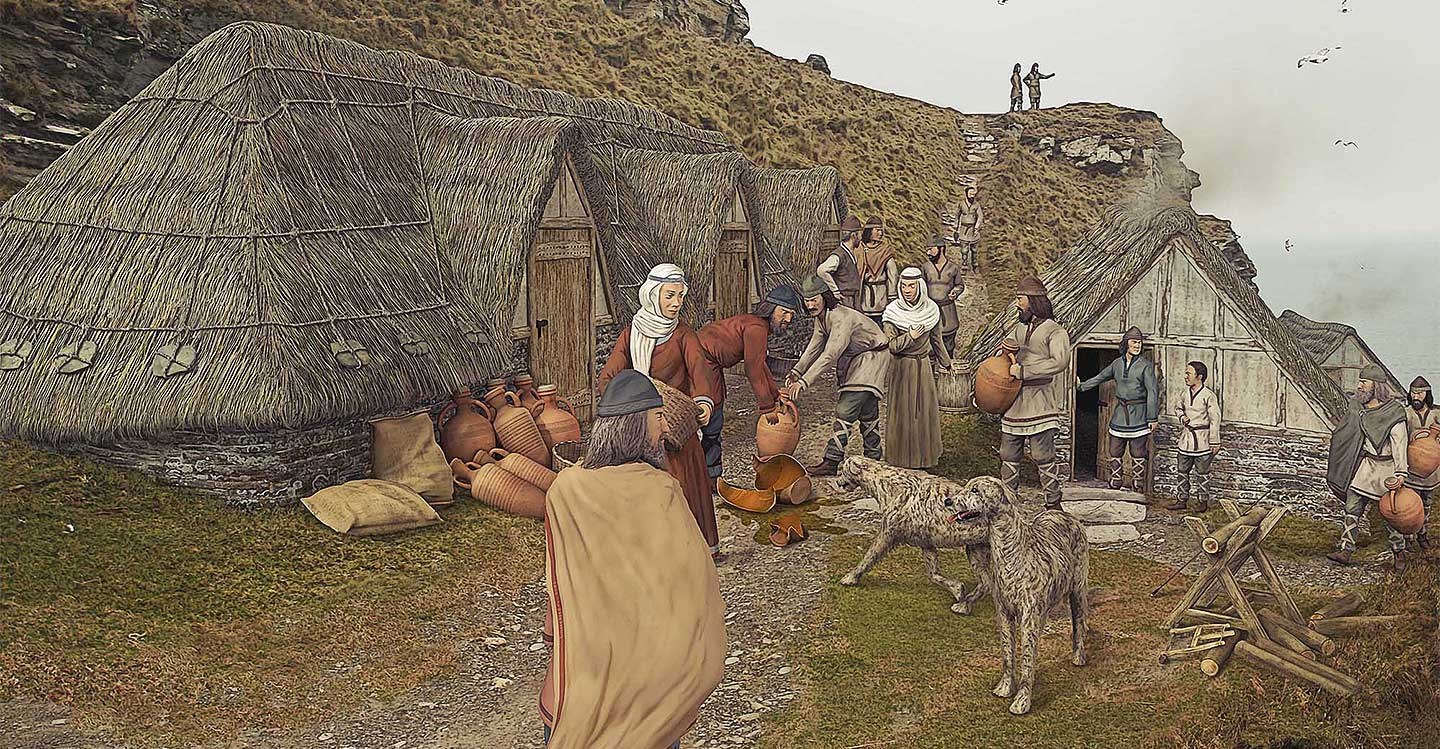 Read a description of the early medieval and medieval remains on the island and mainland at Tintagel.