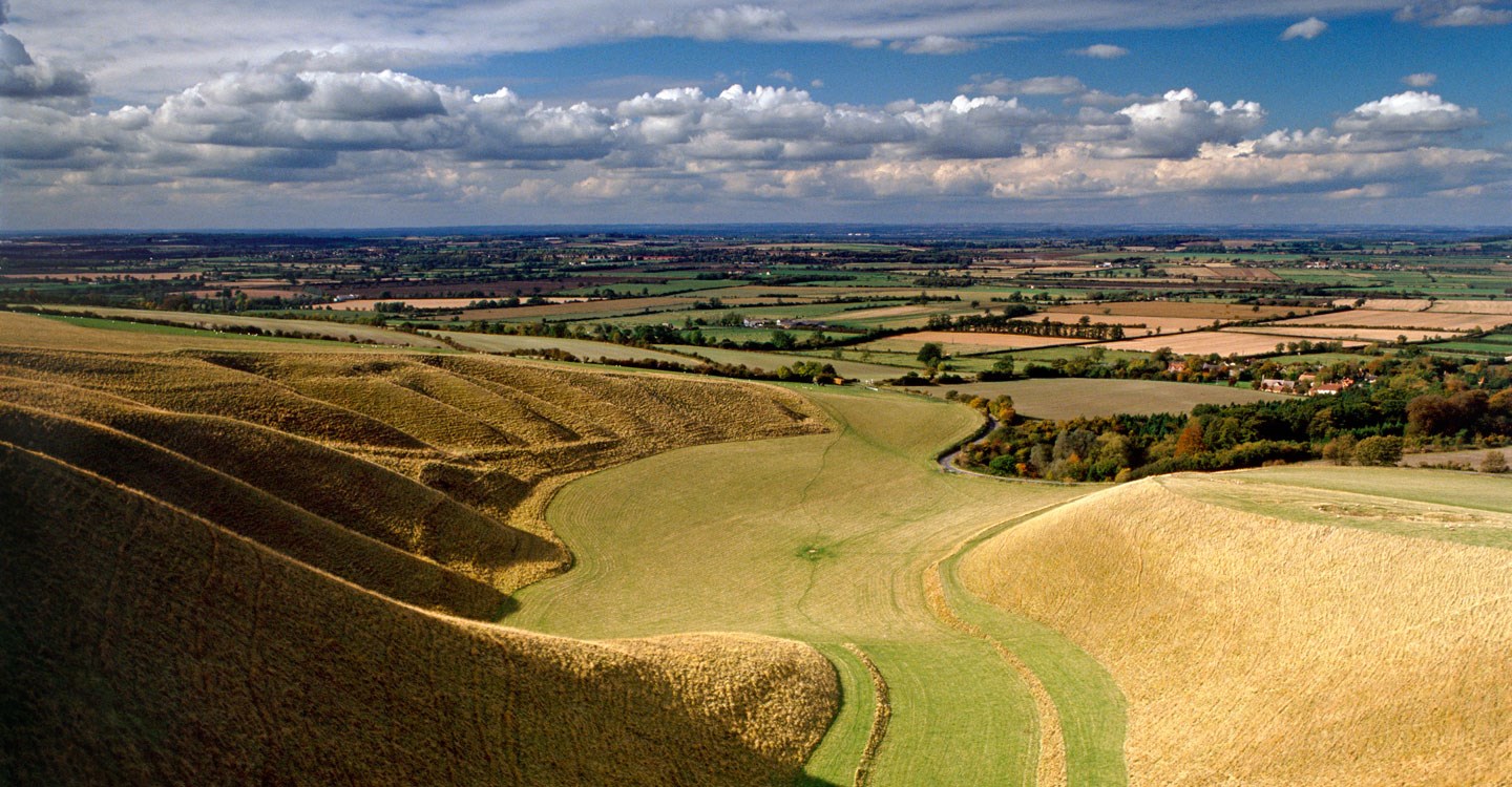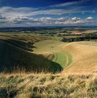 Uffington ‘Castle’, which occupies the summit of Whitehorse Hill, is a rare and outstanding example of a large Iron Age hillfort. The famous White Horse is the oldest chalk-cut hill figure in Britain, perhaps over 3,000 years old. Nearby Dragon Hill, a natural mound about 10 metres high, is named for its association with the legend of St George.
