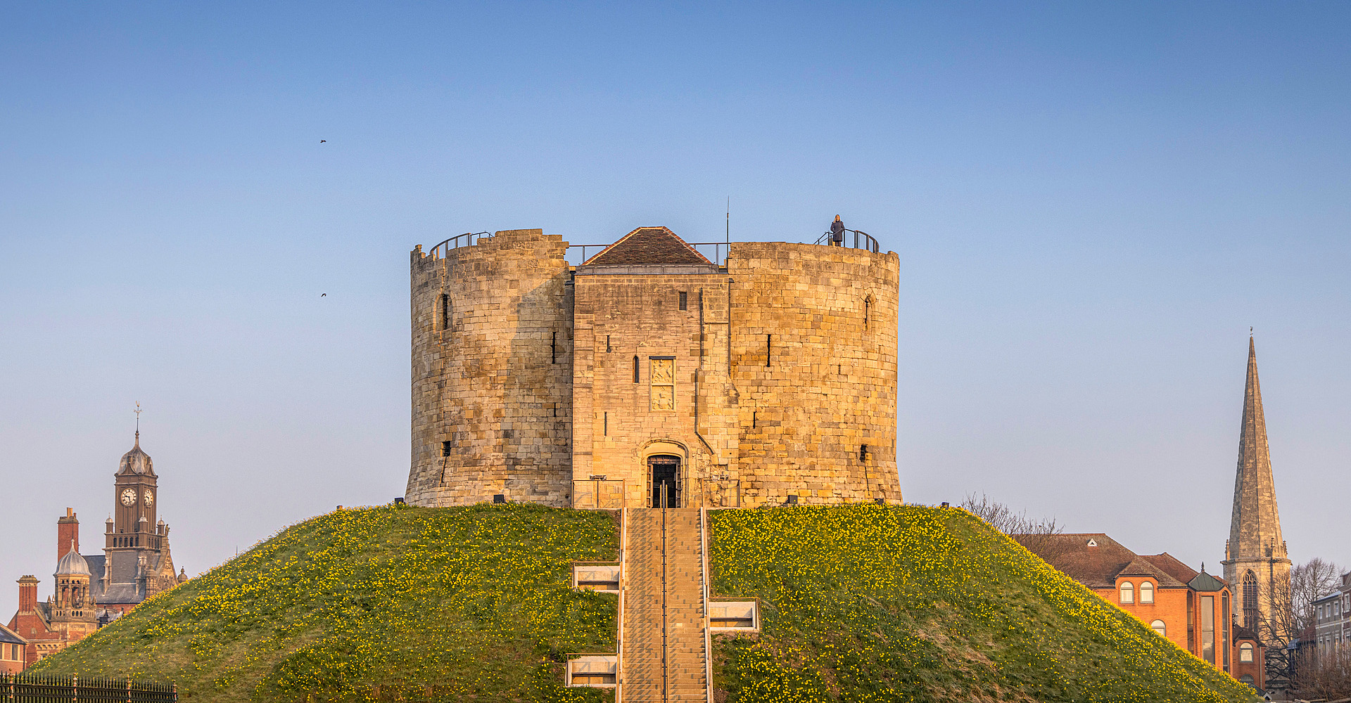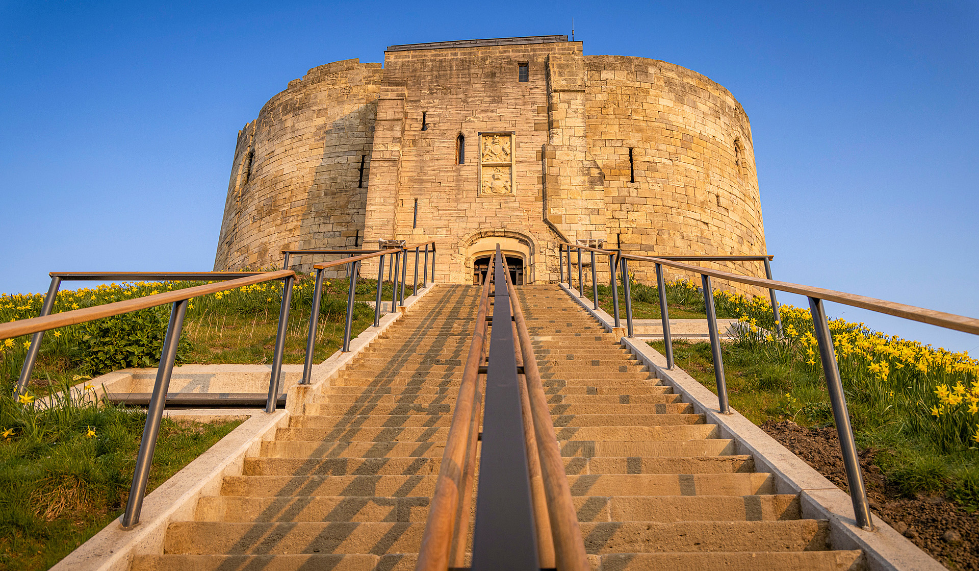 Today at Clifford's Tower, a new roof deck gives unrivalled 360° views over the city's historic skyline, with its medieval buildings and famous Minster. Inside, you and your guests can access the tower's new walkways and staircases which have opened up parts of the tower that have been off-limits for centuries. Reopened on 2 April 2022 following a major £5 million project to conserve and radically transform the interior of the 800-year-old landmark, Clifford's Tower will certainly impress.