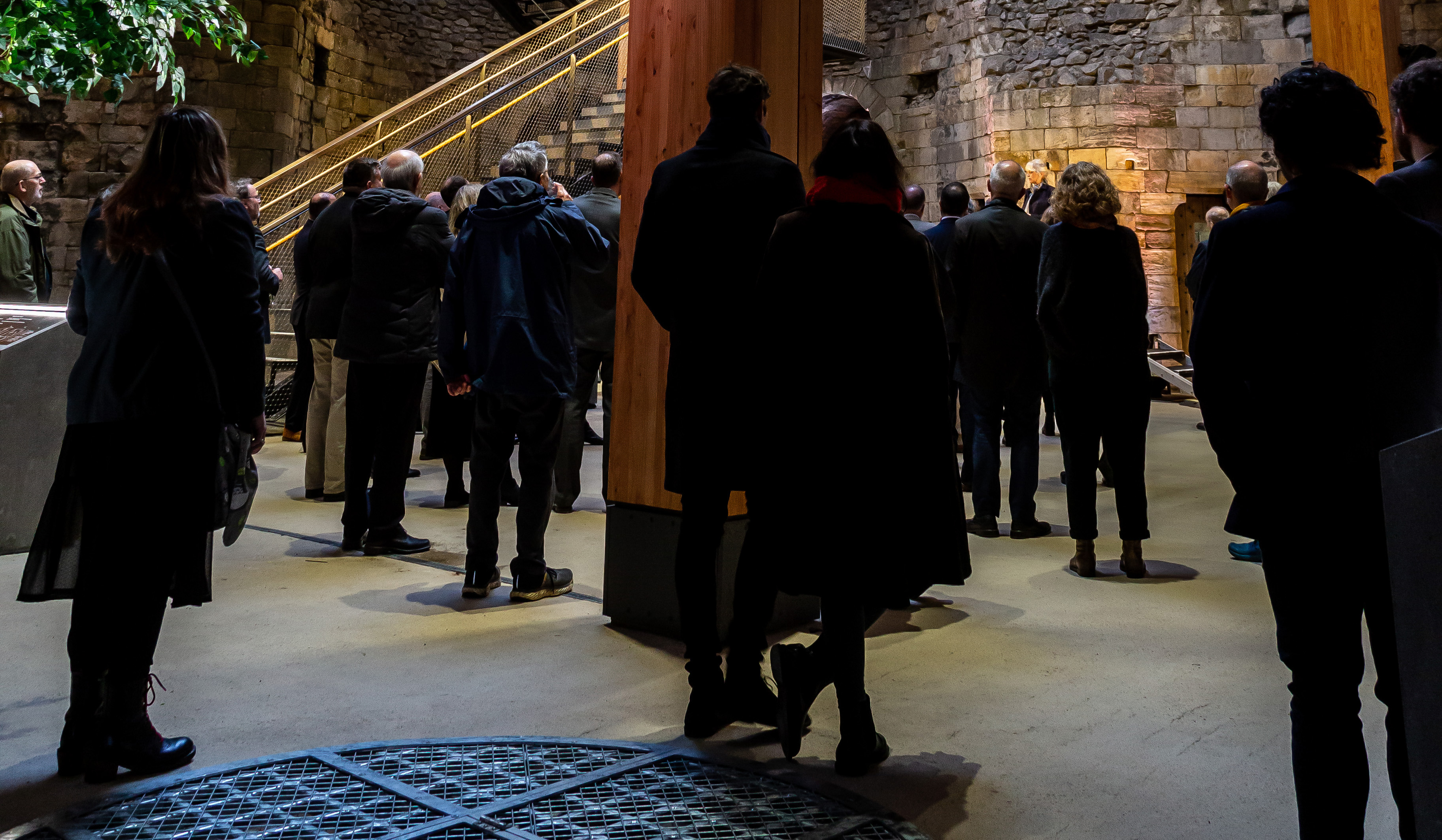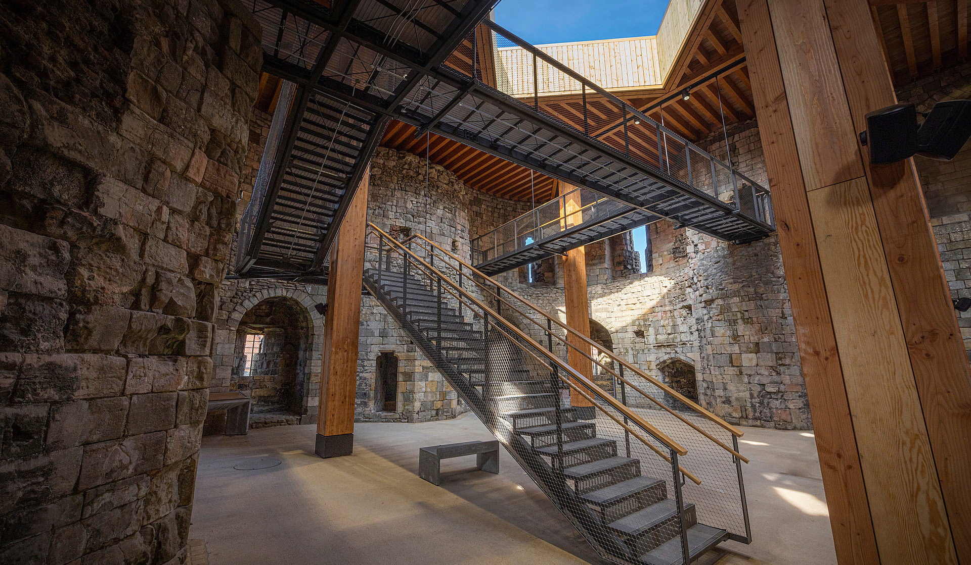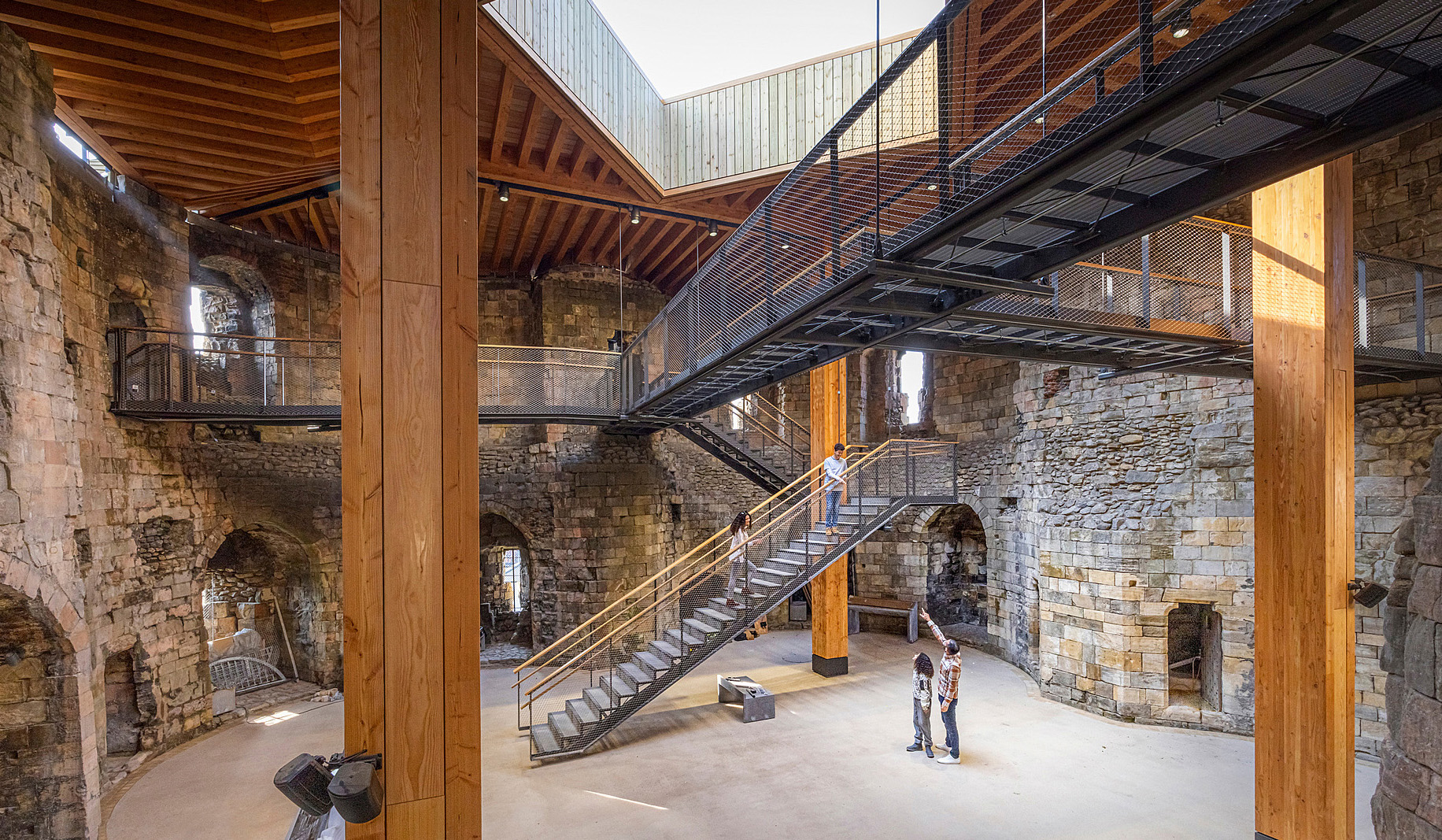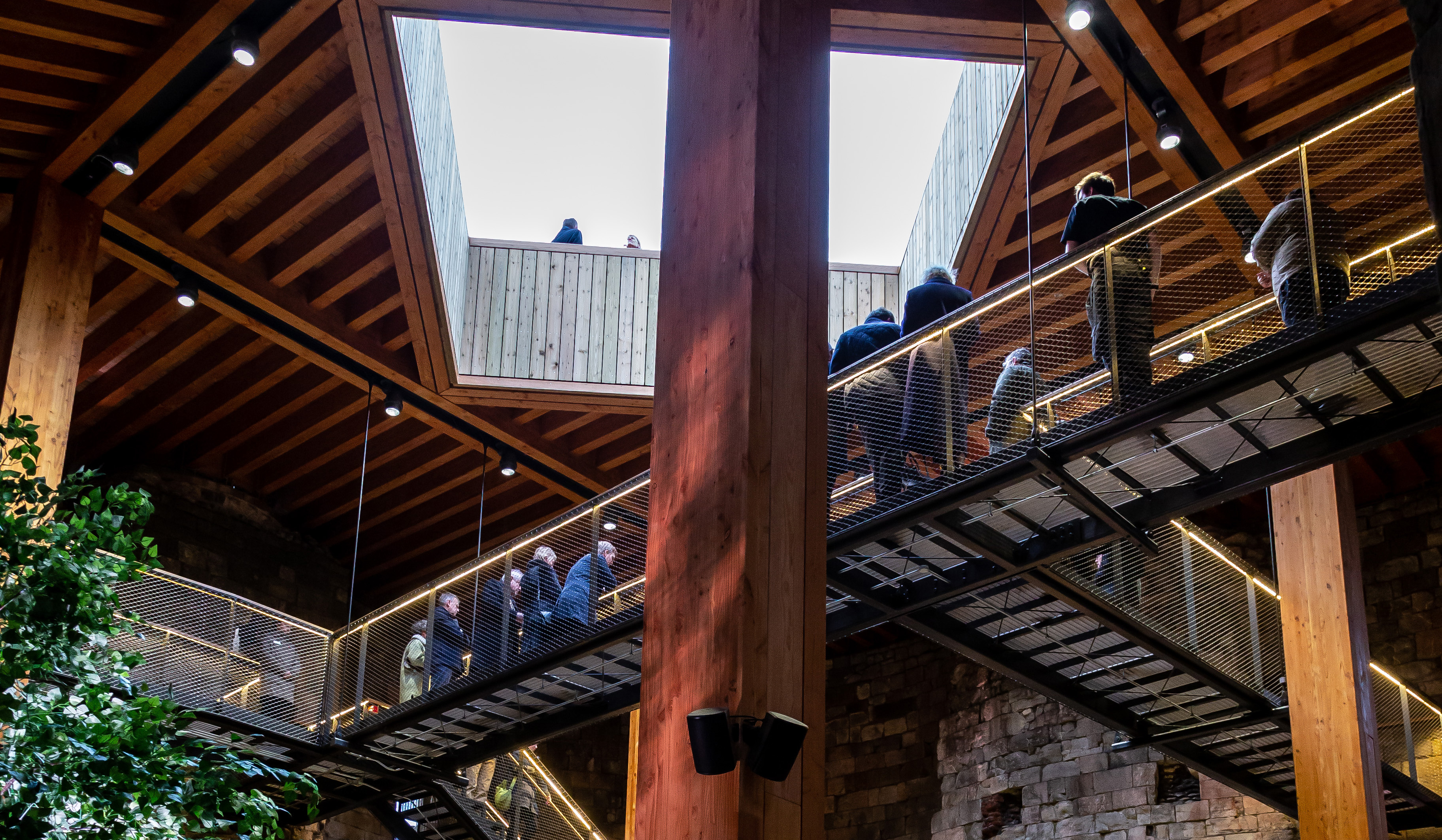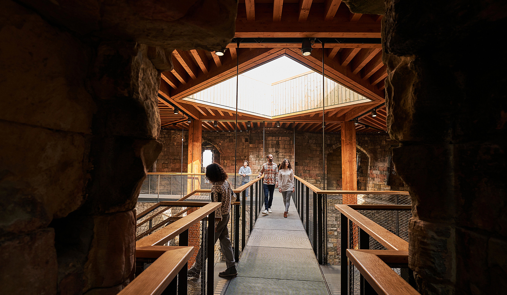 Inside Clifford's Tower, new walkways and staircases have opened up parts of the tower that have been off-limits for centuries. The architectural features of high and wide open space makes a fantastic setting for people to mingle with soft acoustics bounces from lobe to lobe of the tower walls.